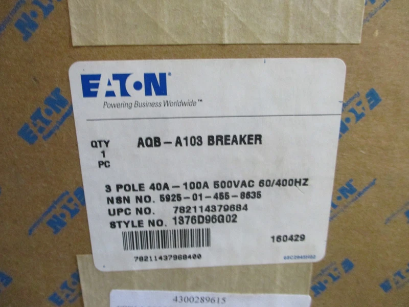 1 review for NEW EATON CUTLER-HAMMER AQB-A103 3 POLE 100A/AMP CIRCUIT BREAKER 1376D96G02