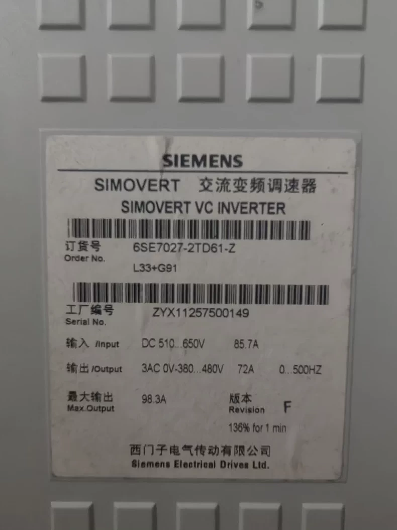 SIEMENS frequency converter 6SE7022-6TC61-Z