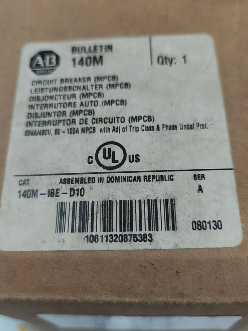 - Order number: Allen Bradley 140M-I8E-D10 Ser A Motor Protection Circuit Breaker