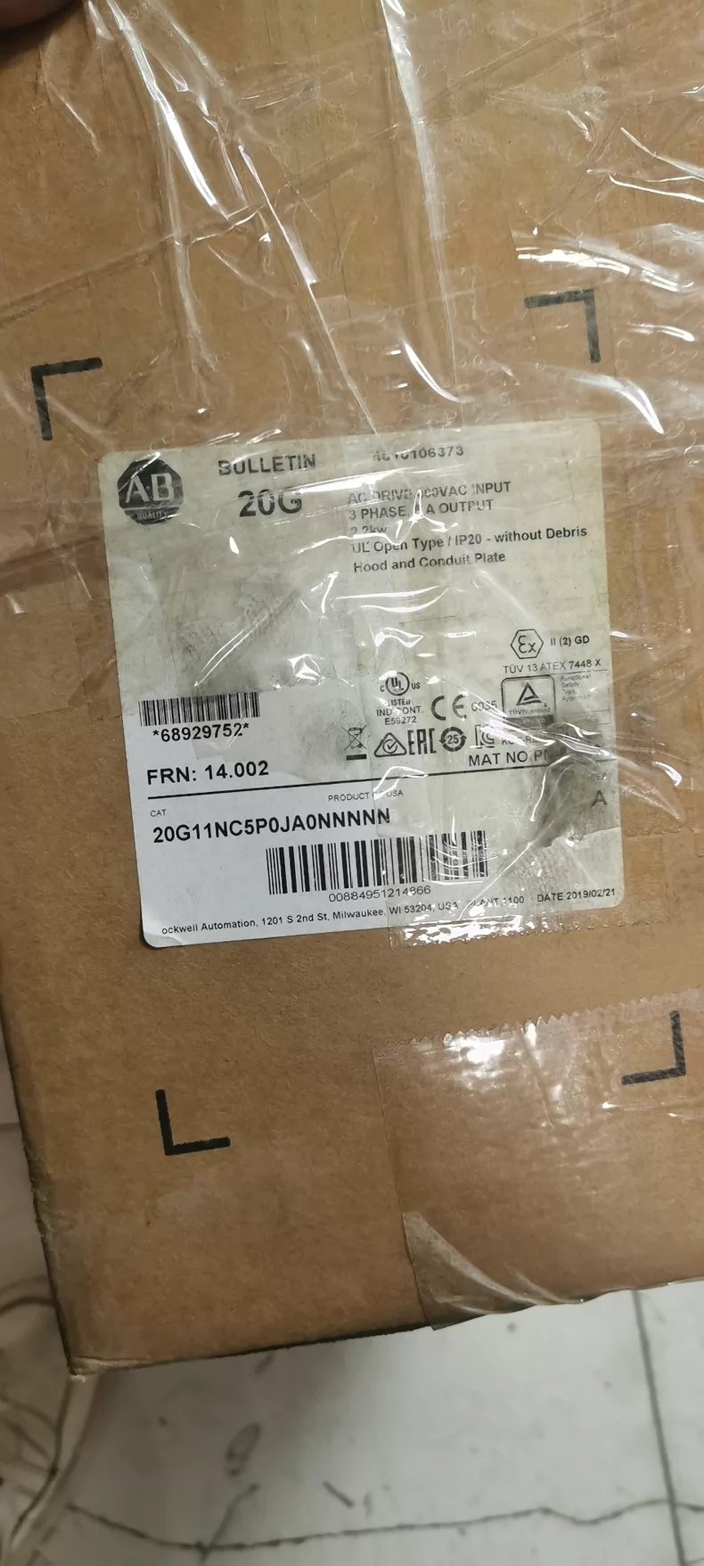 - Order number: Allen-Bradley frequency converter 20G11NC5P0JA0NNNNN