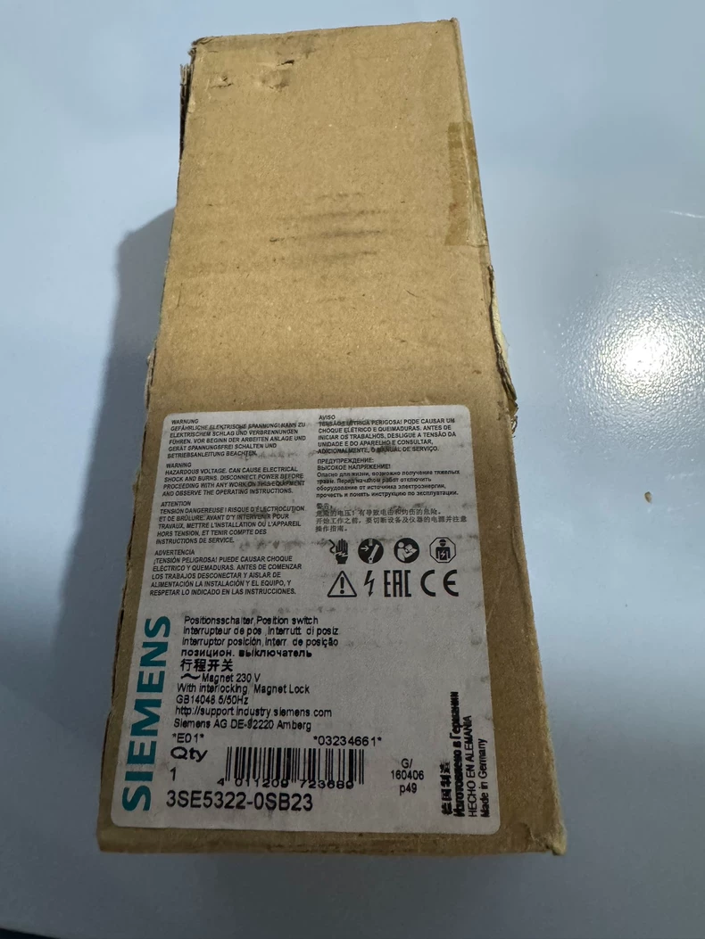 - Order number: SIEMENS 3SE5322-0SB23 Solenoid Interlock Safety Switch