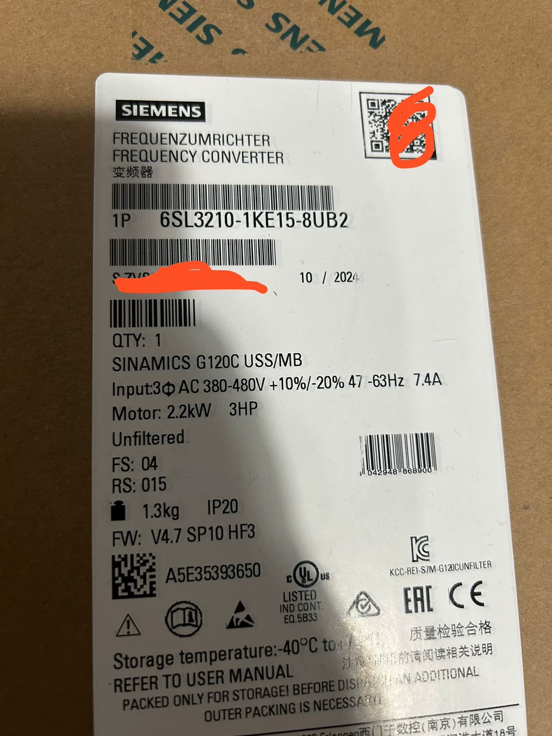 - Order number: SIEMENS 6SL3210-1KE15-8UB2 SINAMICS G120C rated power