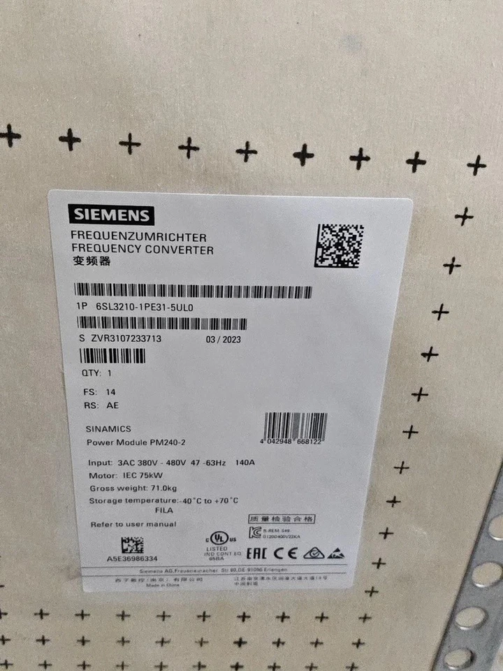 - Order number: SIEMENS 6SL3210-1PE31-5UL0 Frequency Converter