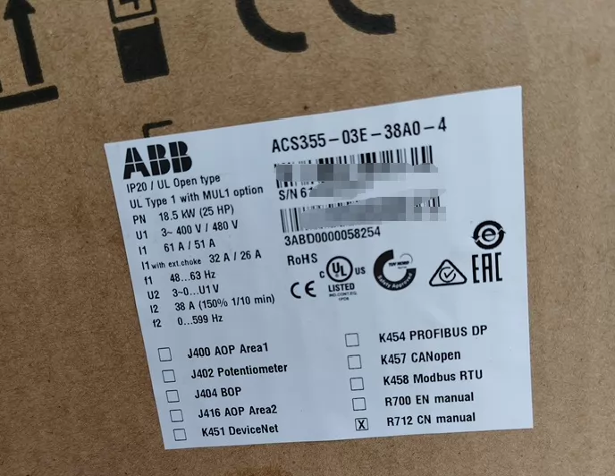 • Order number: ABB Inverter ACS355-03E-38A0-4